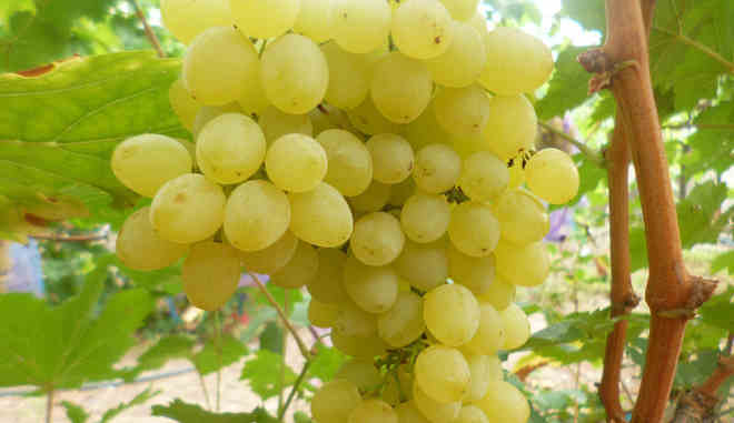 Виноград Белая роза — это очень высокорослый куст, требующий нормирования в связи с хорошей урожайностью. Стабильный урожай, с одного куста собирают около 25 кг винограда.
