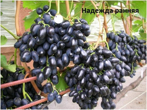Сорт появился на свет благодаря трудам народного селекционера А.А. Голуба, в Украине. «Родители» — ЗОС и Надежда АЗОС. Селекционер поставил перед собой задачу вырастить этакую «рабочую лошадку», которая бы стабильно и качественно плодоносила, не была бы капризна к условиям среды и не боялась бы ни холодов, ни ос, ни гнилей. Надо сказать, что своего результата Голуб добился — именно поэтому Надежда Ранняя быстро распространилась по южным и центральным регионам. Характеристики Сорт отличается высокой урожайностью, потому необходимо нормирование. Обрезают на шесть-восемь глазков, оставляя на куст 35. Ос практически не боится. Морозостойкость — 23-24 градуса по