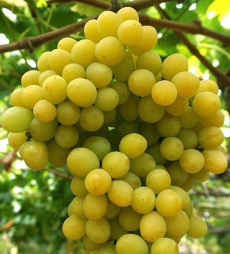 Виноград Рататуй, это кишмиш с необычными сладкими ягодами. Мякоть сочная и мясистая. Виноград относится к среднему сроку созревания до 130-140 дней. Кусты небольшие среднего роста, но из-за высокого содержания сахара, грозди быстро созревают. Сбор урожая Рататуй, начинается в конце августа и длится до середины сентября. Грозди крупные весом от 800-1000г. Ягоды винограда имеют красивый желтый цвет, на солнце приобретают янтарный оттенок.