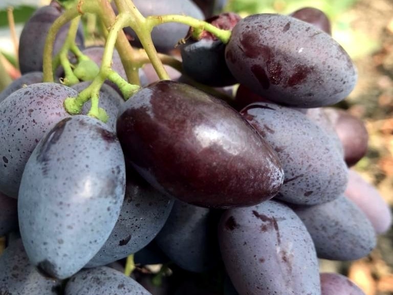 Мякоть винограда очень сочная, плотная и мясистая, буквально тает во рту. Вкус гармоничный, чувствуется мускат.